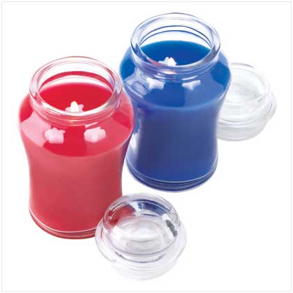 All-American Candle Duet Need a little lift? These cheery candles perk up the room with festive color and the delightful fragrances of two summertime classic treats: Cinnamon Apple and White Lemonade. 30 hours burn time. Weight 1.5 lbs. Paraffin wax; glass container. Each is 2-1/2" diameter x 4-1/2" high. Pair