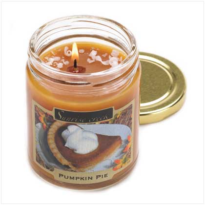 Pumpkin Pie Scent Candle The scrumptious scent of fresh-baked pumpkin pie adds a hint of fall festivity to any room! Long-burning candle fills the air with a wonderful sweet and spicy fragrance. 7.3 oz. jar. Made in USA. Soy blend wax with glass lidded jar. 2 3/4" diameter x 3 1/2" high.