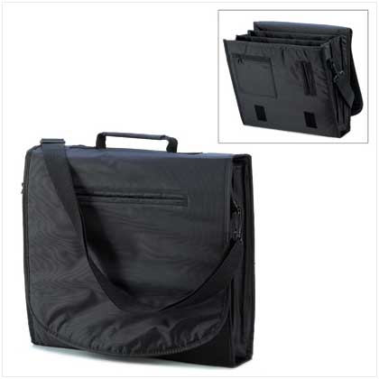 File Folio Shoulder Tote Unique mobile file is any busy person’s dream! Three semi-rigid file compartments organize important papers for breezy storage, while plenty of outer pockets to put pens, cards, and other business essentials right at reach. Weight 1.6 lbs. Polyester fabric. Detachable shoulder strap included. 15 1/4" x 2 3/4" x 16" high.