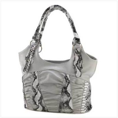 Snakeskin Trim Bag Step out in style with this luxury faux-leather fashion find! Supple shoulder bag features two roomy inner compartments and the latest designer look. A must have for any diva! Two zipper closure at top. Weight 1.5 lbs. Synthetic leather. 16" x 5" x 13" high.
