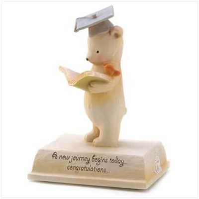 Heartstring Teddies Graduation Honor your favorite grad with a lasting token of their achievement! A tiny teddy stands proudly in his mortarboard in this touching tribute; “What A Wonderful World” provides an uplifting musical accompaniment. HeartString Teddies Collection by Seagull Studios™. Packaged in a gift box. Weight 0.6 lb. Resin. One CR2032 button cell battery included. 3 3/4" x 2 1/2" x 5 1/4" high.