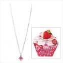 Strawberry Shortcake Necklace Add a frisky touch to your wardrobe when you let this tiny cupcake tag along! Cute and casual necklace features an adorable cupcake pendant in luscious shades of strawberry pink on a silver link chain; such an utterly charming topper for any everyday ensemble. Includes secret recipe for strawberry shortcake and strawberry buttercream frosting. Made in USA. Designed and created by Zorbitz. Weight 0.1 lb. Pewter, enamel, Swarovski Elements® crystal. 18" long; charm is 1/2" x 1/8" x 1/2" high.
