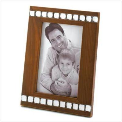 Bejeweled Photo Frame A double dazzle of diamond-bright crystals adds fun and flash to a genuine hardwood photo frame. This playful mix of elegance and simplicity is just right for showing off your favorite faces! Holds a 4” x 6” photo frame. Easel back; glass cover.Weight 0.4 lb. Pine wood and acrylic. 5-7/8" x -1/2" x 7-7/8" high.