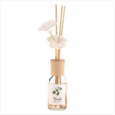 Vanilla Floral Reed Diffuser The sweet scent of vanilla creates a welcoming air of calm, gently drifting from the tips of slender diffusing reeds. Pretty clay flower tips add an extra-special decorative touch! Weight 0.4 lb. Glass, ceramic, and wooden reeds. 1 3/4" diameter x 8 3/8" high with reeds.