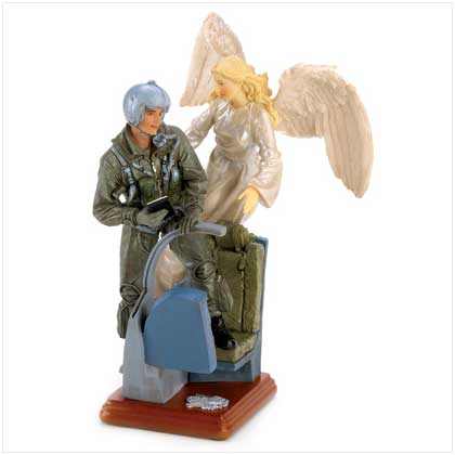 Unseen Air Force Guardian An air force pilot steps inside his fighter cockpit, preparing himself for the battle before him; at his side, an unseen angel gives guidance and guardianship to lead him through the fight. Limited edition of American Heroes™ by Vanmark®. Handcrafted. Weight 3.8 lbs. Resin with wooden base. 7" x 6" x 10" high.