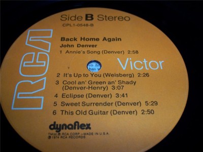 John Denver "Back Home" 12" LP ALBUM VERY GOOD COND