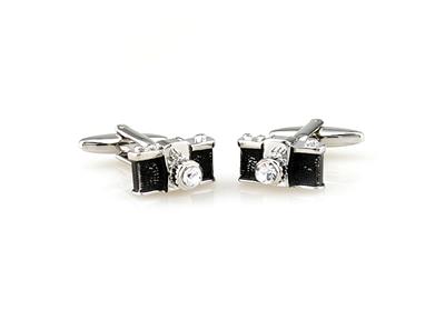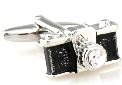 CUFFLINKS SILVER BLACK CAMERA 35MM DIGITAL CANON NIKON PHOTOGRAPHER CRYSTAL BOX