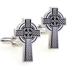 CUFFLINKS SILVER BLACK CELTIC CROSS IRELAND IRISH GIFT BOXED FREE SHIPPING USA