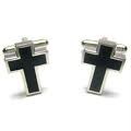 CUFFLINKS SILVER BLACK CROSS CHRISTIAN DEACON CHURCH MINISTER FREE SHIP GIFT BOX