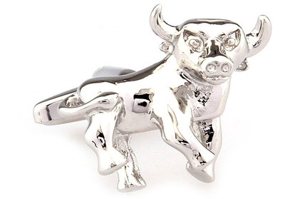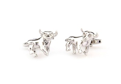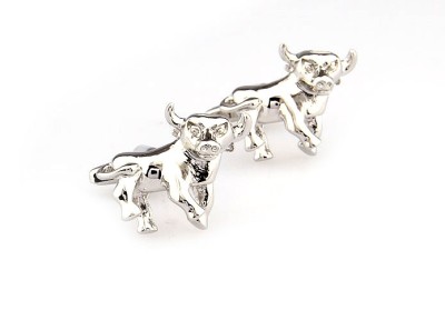 CUFFLINKS SILVER BULL WALL STREET BROKER STOCKS INVESTOR GIFT BOX FREE SHIP BANK