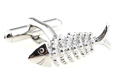 CUFFLINKS SILVER FISH BONES BONEFISH FISHERMAN YACHT SAILOR WEDDING GROOM USHER