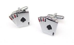 CUFFLINKS SILVER FOUR ACES 4 OF A KIND POKER WSOP LAS VEGAS DEALER CASINO CARDS