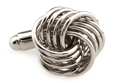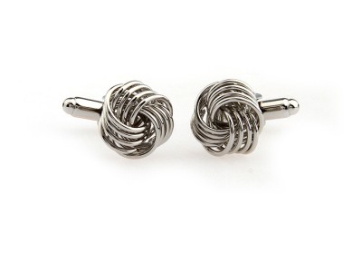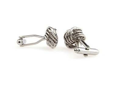 CUFFLINKS SILVER KNOT 3D 4 BANDS SMOOTH FORMAL WEDDING GROOM BEST MAN FREE SHIP GIFT BOX