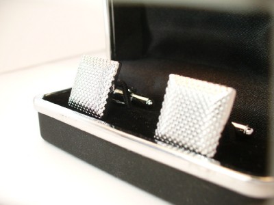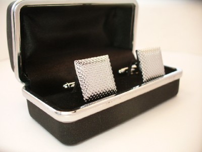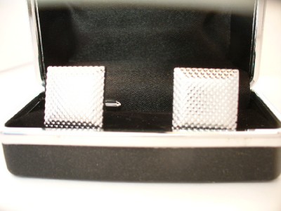 CUFFLINKS SILVER SQUARE TEXTURED FREE SHIPPING GIFT BOX WEDDING GROOM USHER DAD
