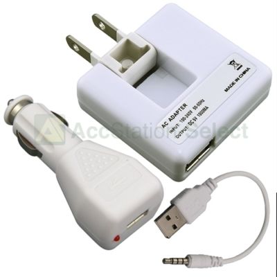 For APPLE FOR 1GB/2GB IPOD SHUFFLE AC WALL+CAR CHARGER+USB CABLE