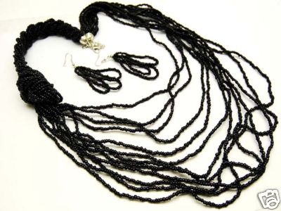 New Black Multi strand Necklace,Part Braided,Lucite Beads / LONG 30/40INCH / Lead free.Excellent Quality.Approx.3"extension lobster claw clasp.Multi Strand Matching pierced earrings.