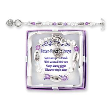 "The Kid's Size Bracelet that says it all! This Expressively Yours Childrens bracelet features three beads, each with a Sterling Silver finish and engraved with one of the words: ""Always"" ""Sister"" ""Always"". The dangling Heart charm has a beautiful cut out design. Bracelets are individually gift boxed with a verse card inside which reads: ""Sisters are special Friends, with secrets all their own, Always sharing giggles, whenever they're alone."" Lead Free " Case Pack 3