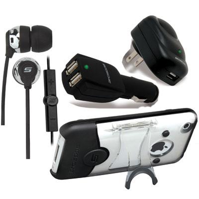 This essentials pack includes the HP150M Noise isolation earphones with integrated control surface and microphone; reVIVE(ip3in1) USB home/dual charger kit and the kickBACK-S(ip3kcb) clear on black hybrid case for iphone 3G S and iPhone 3G.