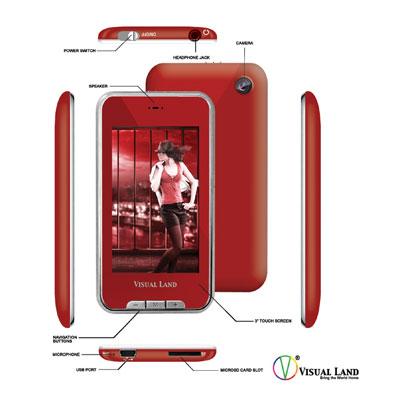 The V-Touch Pro features a 3 touch screen with multiple video, music and image support in an ultra-thin, portable housing. It has a TV Out for playing videos on external TV/Monitor, a built-in camera, built-in speaker and MicroSD card slot. Also has an FM Radio, Voice Recorder and E-Book reader. Accessories: In-Ear Headphones, USB Connector
