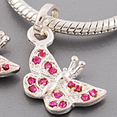 1 x Beautiful Sterling Silver Plated Pink CZ Butterfly Drop Charm