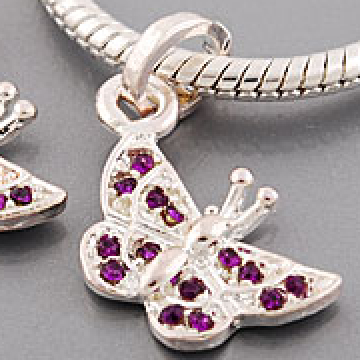 1 x  Beautiful Sterling Silver Plated, Purple CZ Butterfly Drop Charm