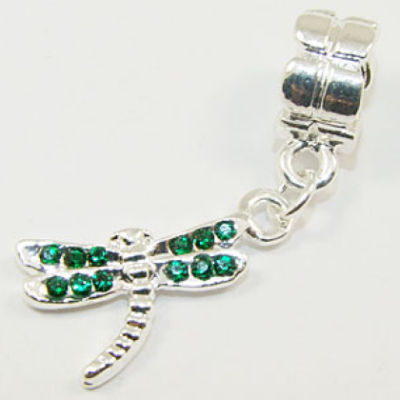 1 x Sparkly Sterling Silver Plated Green CZ Dragonfly Drop Charm