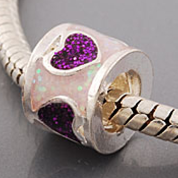1 x Sterling Silver Plated, Sparkly Glittered Enamel Hearts Spacer Charm
