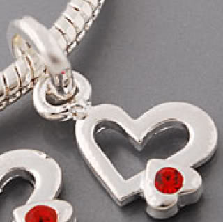 Silver Plated Red CZ Heart to Heart Drop Charm