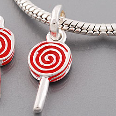 1 x Beautiful Silver Plated Red Enamel Lollipop Drop Charm