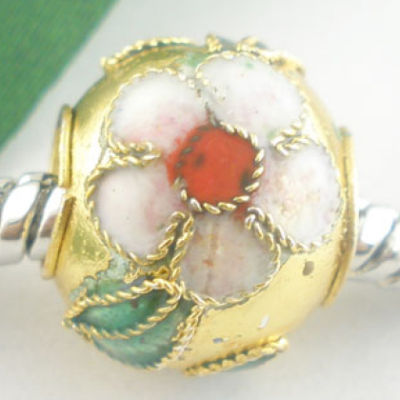 GOLDEN FLORAL CLOISONNE CHARM BRACELET BEAD #1030