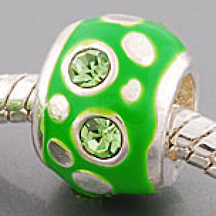 GREEN CZ ENAMEL CHARM BRACELET BEAD♥ANY 4=5th FREE♥791