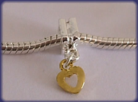 Bonito Abalorio Colgante Corazon Bañado en Plata y Oro Para Pandora o Pulsera Europea