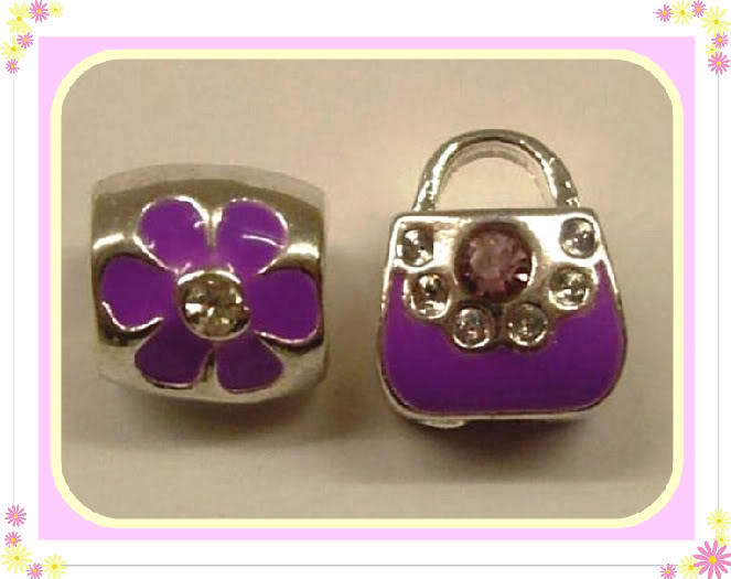 2 Abalorios Esmaltado en Morado, Compatible con Pandora