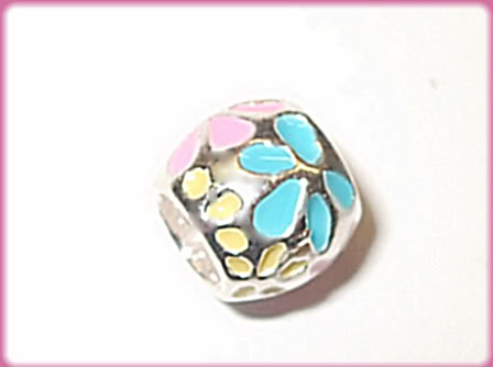 Baño de Plata con Motivos de Flores Esmaltado en Rosa, Azul y Armarillo.