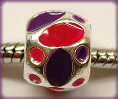 Bañado en Plata con Motivos en Esmaltado en Morado y Rojo.