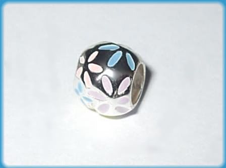 Abalorio de Plata925 Esterlina con Motivos de Flores Esmaltado en Rosa, Azul y Armarillo.
