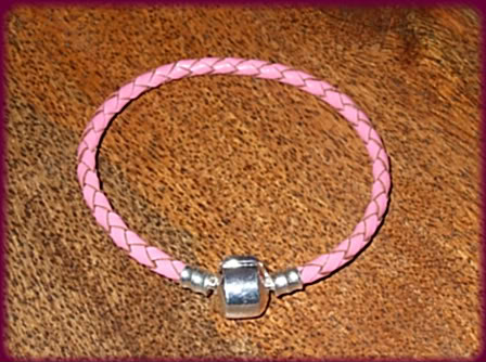 Pulsera Piel Trenzada Rosa y Cierre en Baño de Plata, 16CM, para añadir tus propios abalorios.