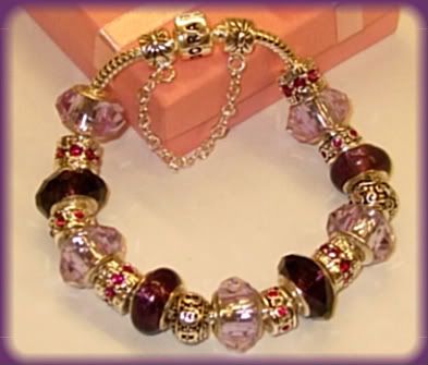 9 abalorios en plata 925, 7 de ellos con Cristales en Tonos de Rosas
