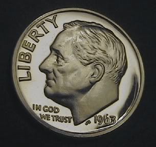 1963 SILVER ROOSEVELT DIME PROOF CAMEO