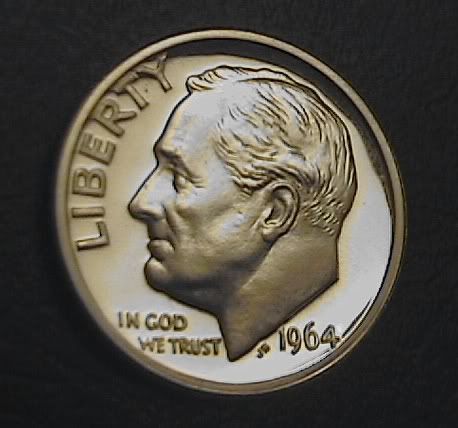 1964 SILVER ROOSEVELT DIME PROOF CAMEO