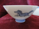 Japanese Kyoto Rice bowls-4- blue & white with horses
