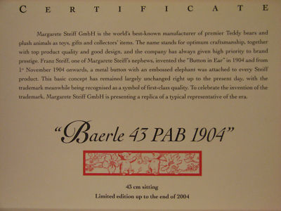 STEIFF BEAR BAERLE 43 PAB 1904 NEW IN BOX!!