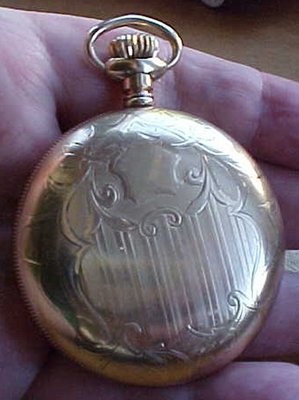 You are viewing a VINTAGE ELGIN 17 JEWELS GOLD FILLED POCKET WATCH with a 40 inch chain with a tag that has 24K88 - Case measures 2 7/8" from top of chain eyelet to bottom of case. Inside back cover is stamped BANNER GOLD FILLED 103242 - Both front and Back are Screw off covers and front has to be removed and lever pulled out to set time. It will run for a while and stop. The gentleman I purchased it from said his father never took it to shop. The crystal and case don't show any heavy scratches. The case has very little wear.