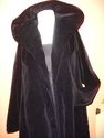 Black VELVET color , A-line style, 2 pockets , wide shawl collar / Hood ,fully lined , has 1 button closure .