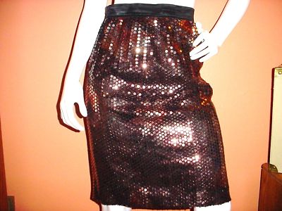 Pencil skirt in brown sequins, black waist band, back zipper closure , fully lined with logo lining.