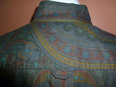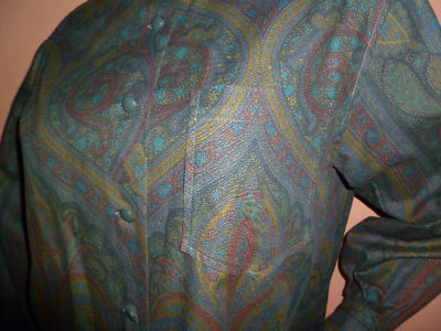 Timeless paisley print in dark colors , buttons front closure, wide sleeves, one chest pocket .