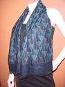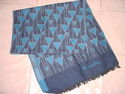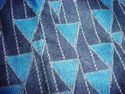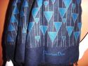 With Magic Triangles pattern , knit LOGO . Navy blue , teal/blue, gray colors.