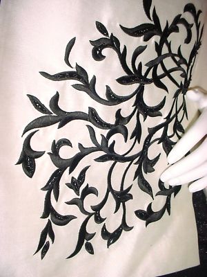 Luxury dupioni SILK in white color with black embroidery and beads.
