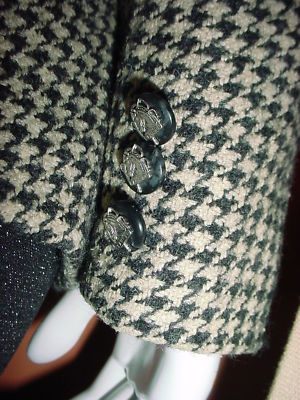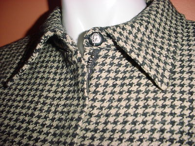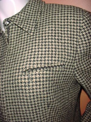 Luxury blend - Wool and Silk in classy Houndstooth pattern ! Dark brown and beige colors, zipper front closure, 3 pockets, horse / logo buttons, fully lined. Mint condition - lining on one sleeve been sewed back, otherwise great condition.