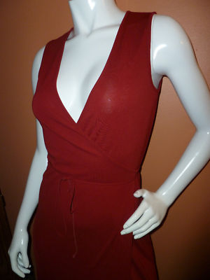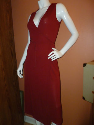 Wrap style, red brick color, rayon and polyester.